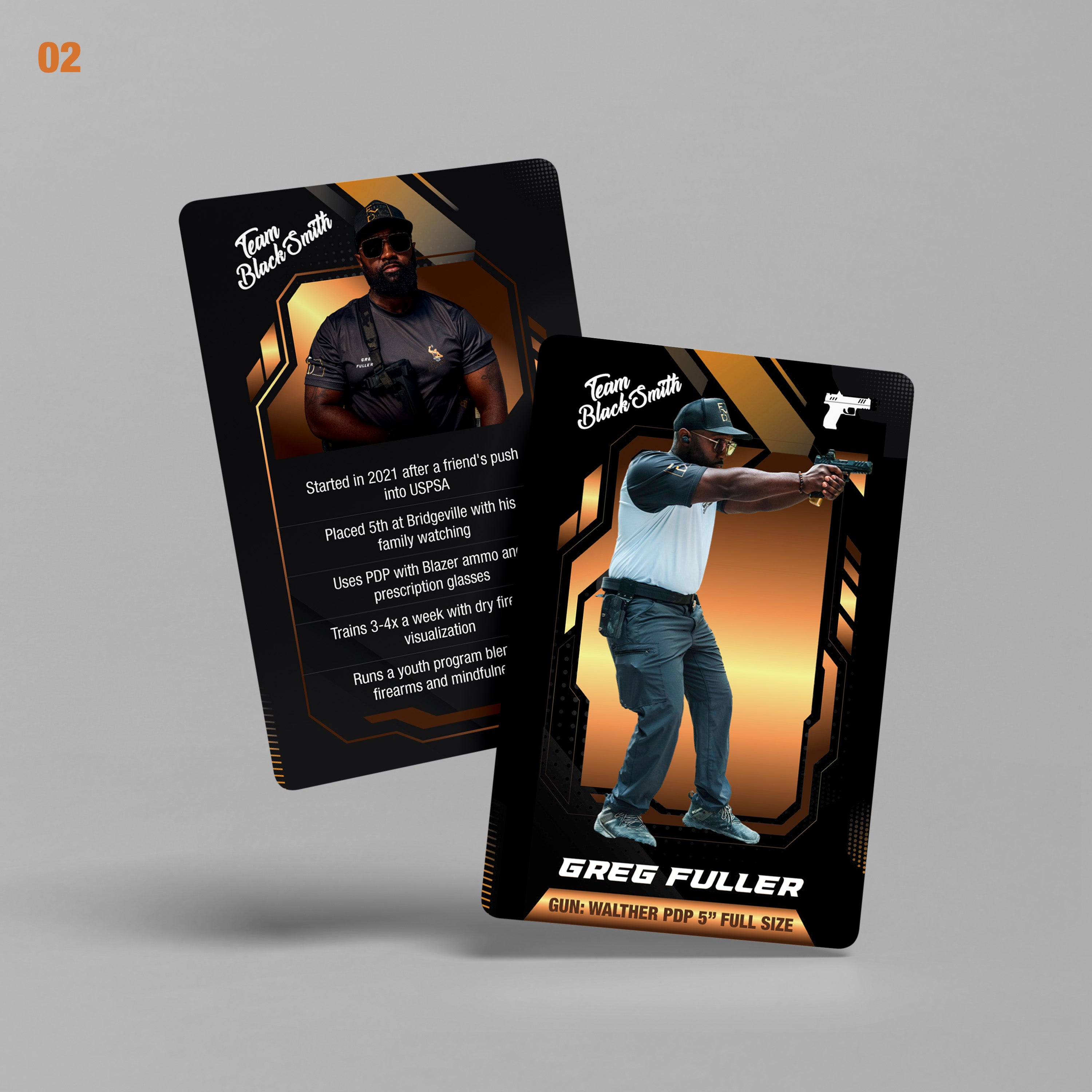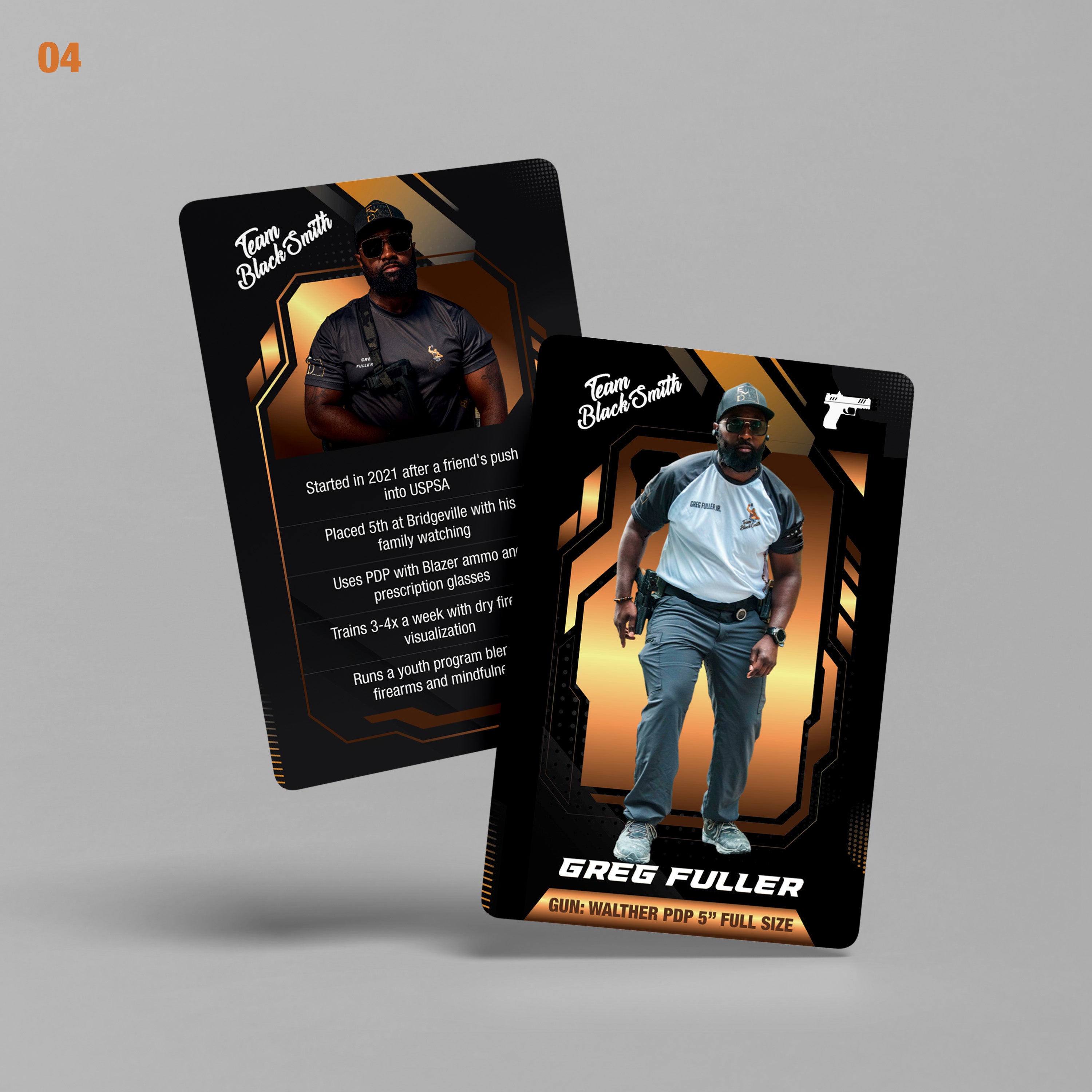 This card highlights Greg’s unique balance of competitive drive and community outreach. Whether he is running his Walther PDP 5” in a USPSA match or developing gun violence prevention programs for youth, Greg prioritizes mental focus and mindfulness. He represents the heart of the team's mission: visibility, representation, and transferring the discipline of the range into everyday life.